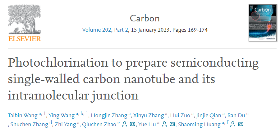 这一成果近期以“Photochlorination to prepare semiconducting single-walled carbon nanotube and its intramolecular junction”为题发表在国际期刊《Carbon》上,日本a片