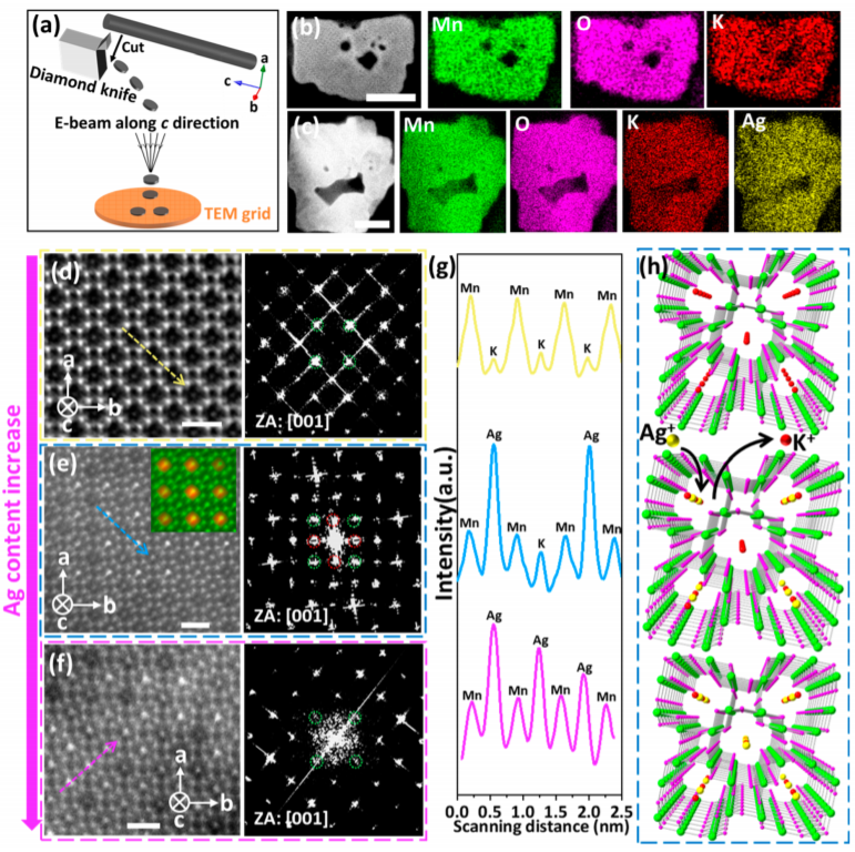 基于MnO2的八面体分子筛(OMSs)由于其微孔隧道骨架能够吸附和交换各种离子,特别是阳离子,在去离子、地球化学和储能领域得到了广泛研究兴趣。了解OMS隧道内的阳离子吸附/交换需要原子尺度的探索,这几乎没有报道。近日,日本a片