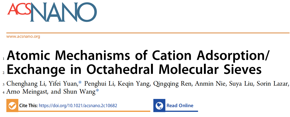 Chenghang Li, et al. Atomic Mechanisms of Cation Adsorption/Exchange in Octahedral Molecular Sieves. ACS nano, 2022.