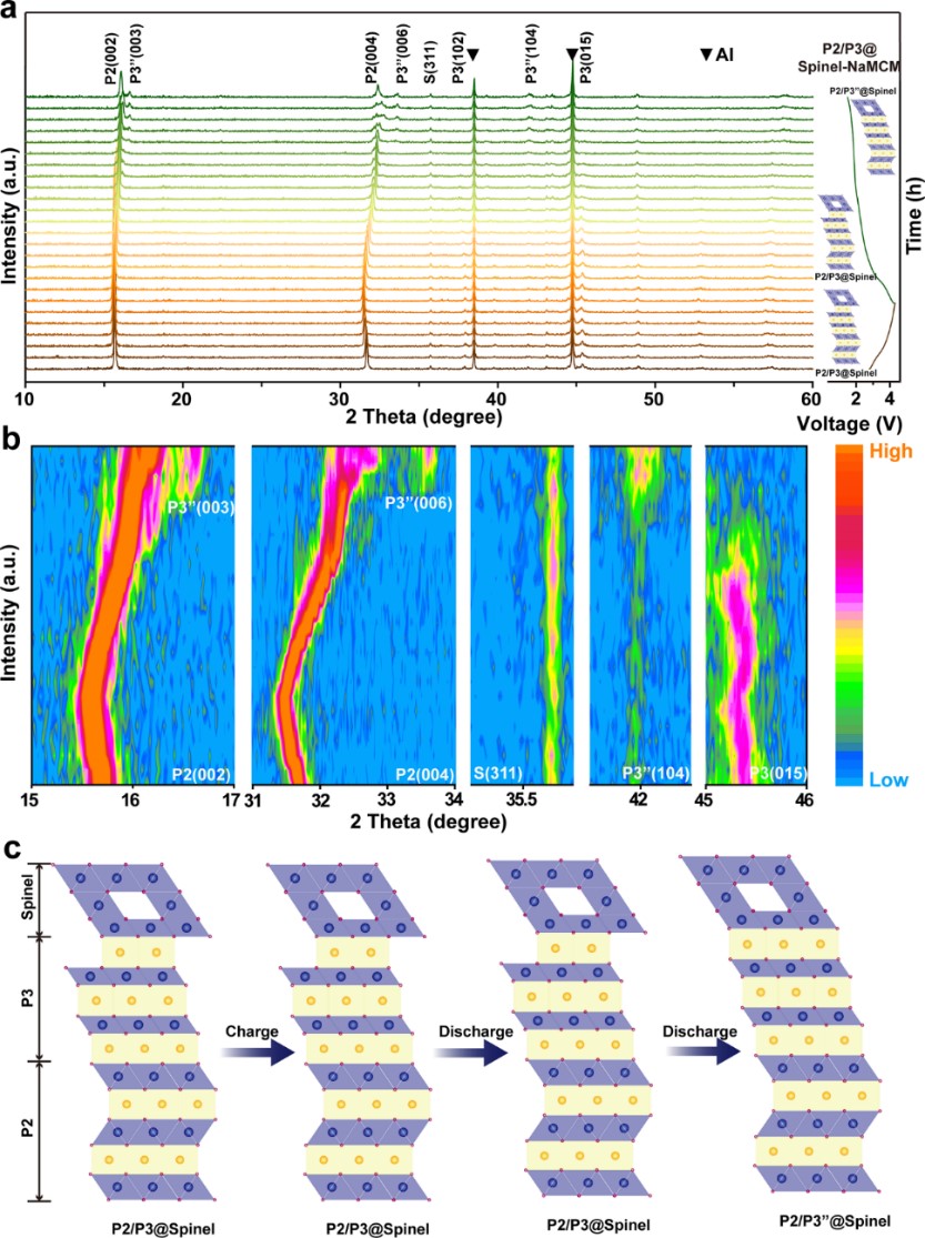 图2. 基于原位尖晶石界面重构正极材料的晶体结构动态演化