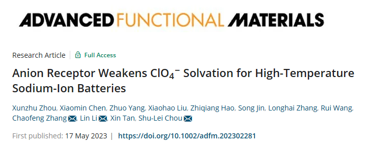 可充电池对季节性和日常工作温度波动的温度耐受性极大影响其稳定性和安全性。然而,高温会加剧电解液的持续性分解,生成不稳定的正极-电解液界面膜(CEI),导致电池容量的快速衰减。近日,我院碳中和技术创新研究院李林团队联合安徽大学在国际权威期刊《Advanced Functional Materials》上发表题为《Anion Receptor Weakens ClO4–Solvation for High-Temperature Sodium-Ion Batteries》的学术论文。该工作引入了阴离子受体三(五氟苯基)硼烷(TPFPB)作为电解液添加剂,通过构建稳固且富含NaF的CEI膜提升电池的高温循环稳定性。密度函数理论(DFT)证明TPFPB和ClO4−阴离子之间通过B-O键表现出强相互作用,体现为两方面优势:其一,高氟化末端的TPFPB添加剂通过ClO4−阴离子参与中心Na+的溶剂化构型配位,并优先分解生成稳固且富含NaF的CEI膜;其二,削弱了ClO4−的溶剂化作用,促进溶剂与Na+阳离子的配位能力,显著提高电解液的氧化稳定性。所构筑的电解液在磷酸钒钠正极中,在4.2V的高截止电压(vs. Na+/Na)和60℃的高温条件下,100次循环后容量保持率达86.9%,并在-30至60°C的宽温域范围内展现出优异的高压稳定性及倍率性能。日本a片相关的文章发表在国际著名期刊Advanced Functional Materials上,我院侴术雷教授、李林特聘教授为该论文共同通讯作者,相关工作受到国家自然科学基金、安徽省自然科学基金、浙江省自然科学基金、国家电网科技计划等项目的支持。