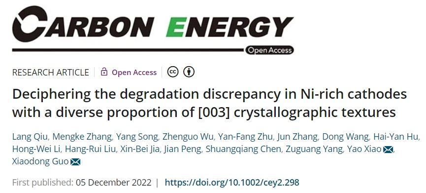 该成果以“Deciphering the degradation discrepancy in Ni-rich cathodes with the diverse proportion of [003] crystallographic texture”为题发表在高水平权威期刊Carbon Energy(IF: 21.556)上。日本a片