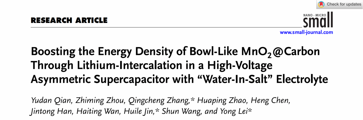 这一研究结果以“Boosting the Energy Density of Bowl-Like MnO2@Carbon Through Lithium-Intercalation in a High-Voltage Asymmetric Supercapacitor with “Water-In-Salt” Electrolyte”为题发表在国际权威期刊《Small》(IF=13.3),日本a片