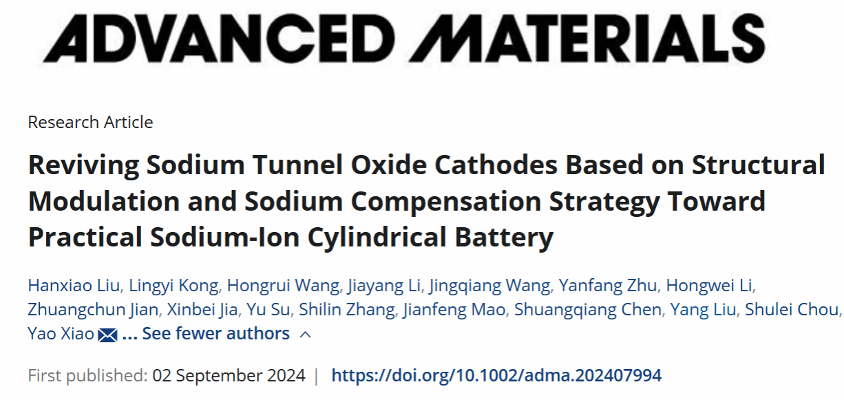 该成果以“Reviving Sodium Tunnel Oxide Cathodes Based on Structural Modulation and Sodium Compensation Strategy Towards Practical Sodium-ion Cylindrical Battery”为题,发表在《Advanced Materials》上,日本a片