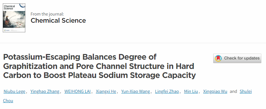 此项工作以Potassium-Escaping Balances Degree of Graphitization and Pore Channel Structure in Hard Carbon to Boost Plateau Sodium Storage Capacity为题发表在国际期刊Chemical Science上,日本a片