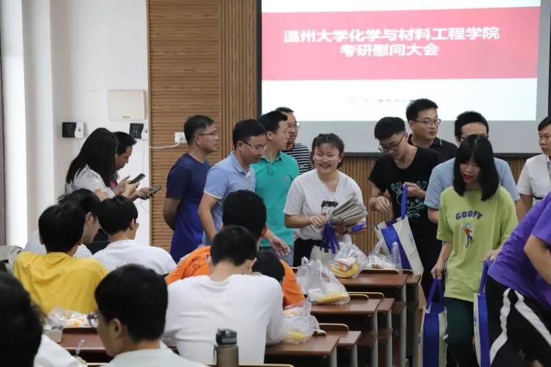 学院每隔两个月都会组织一次考研慰问,与考研同学们进行亲切交流,了解学生的复习准备情况和心理状态,并且由老师们给每个同学送上一份小礼品。礼品虽简单,话语虽朴素,但是给寒冬酷暑中努力复习的同学们送去了些许温暖。