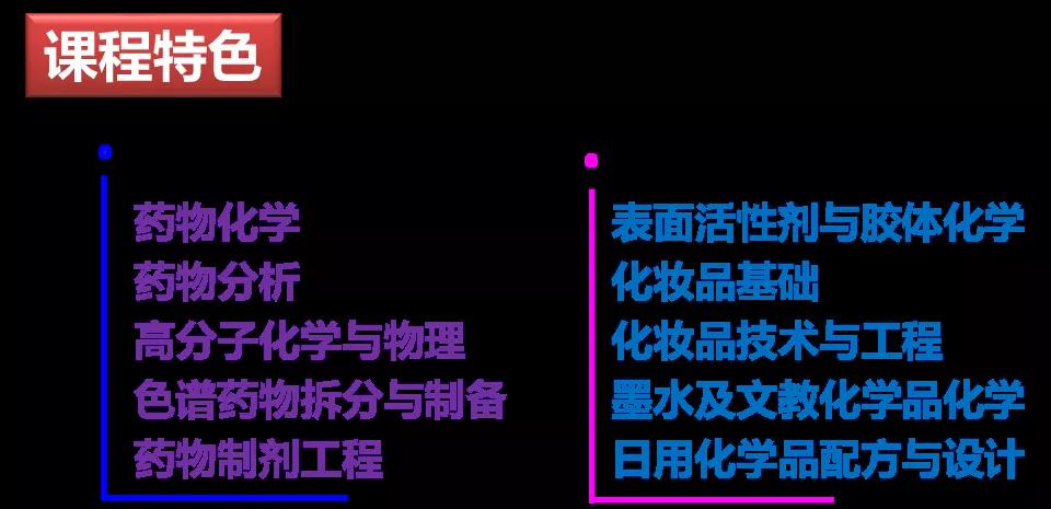 专业拥有全球唯一的制笔及文教化学品特色学科方向和全国排名前三的皮革化学方向,该方向毕业生获得包括日本、欧美等国在内的国内外大型企业的青睐。