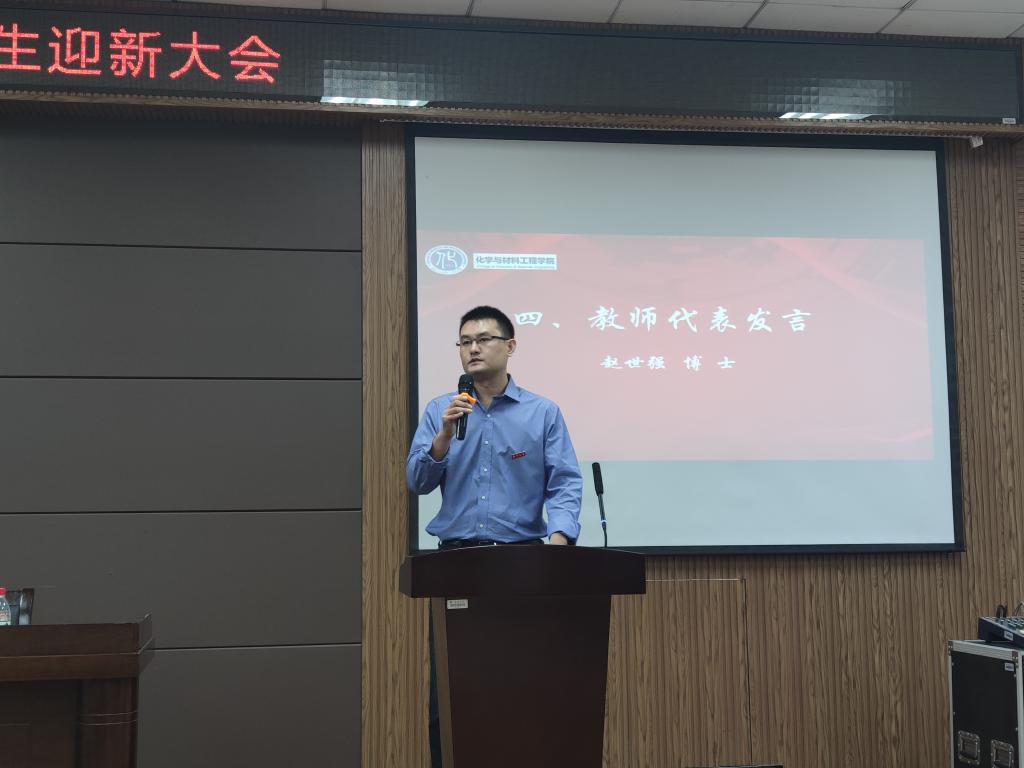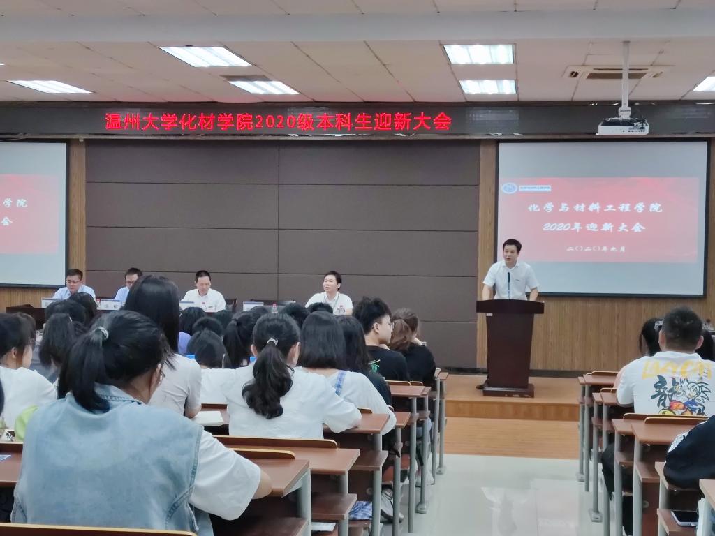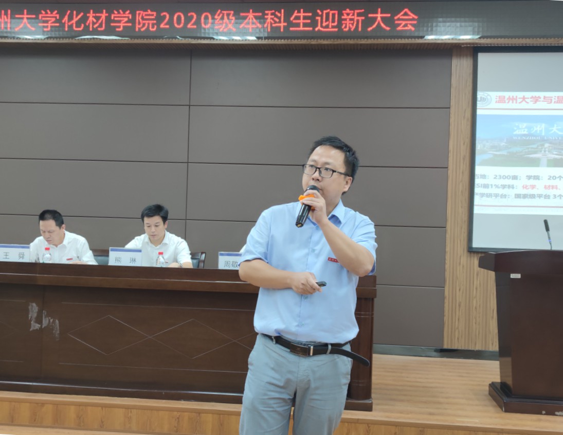 首先,由杨植副院长从学校地理位置、学科情况、校园生活、班主任情况等方面对于化材学院的基本情况做了简单的介绍,并对新生提出几点希望。最后他祝愿全体新生抓住温大的美好时光,谱写人生新篇章。