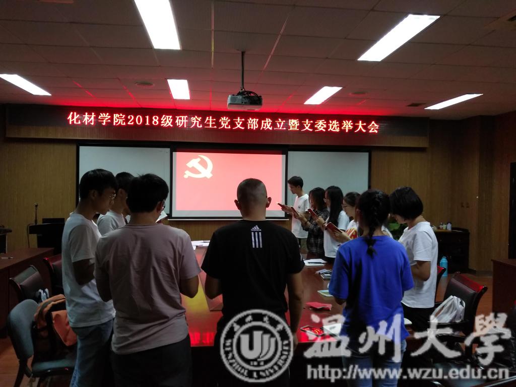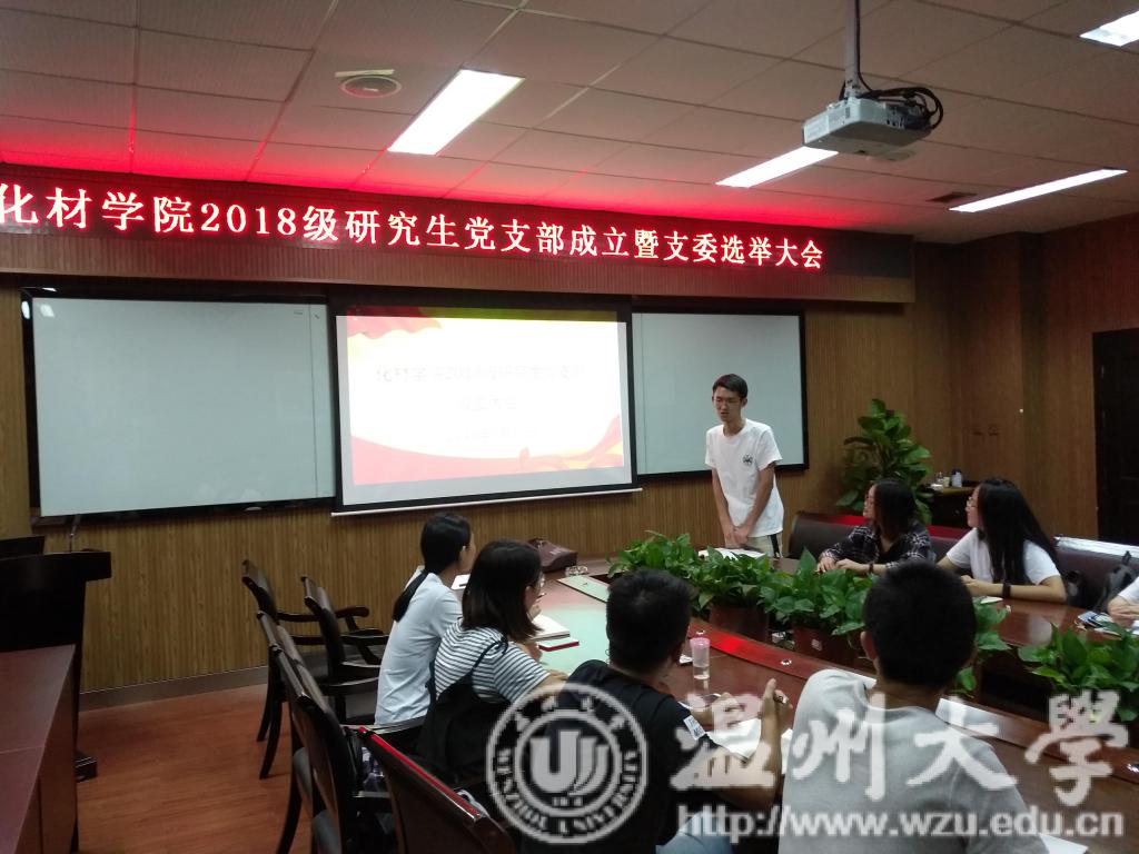 9月28日晚上18:00,化材学院2018级研究生党支部成立大会暨支委选举大会在化材楼11B204会议室召开。研究生党建指导老师邹涌彬以及党支部全体党员参加了大会,会议由邹涌彬老师主持。