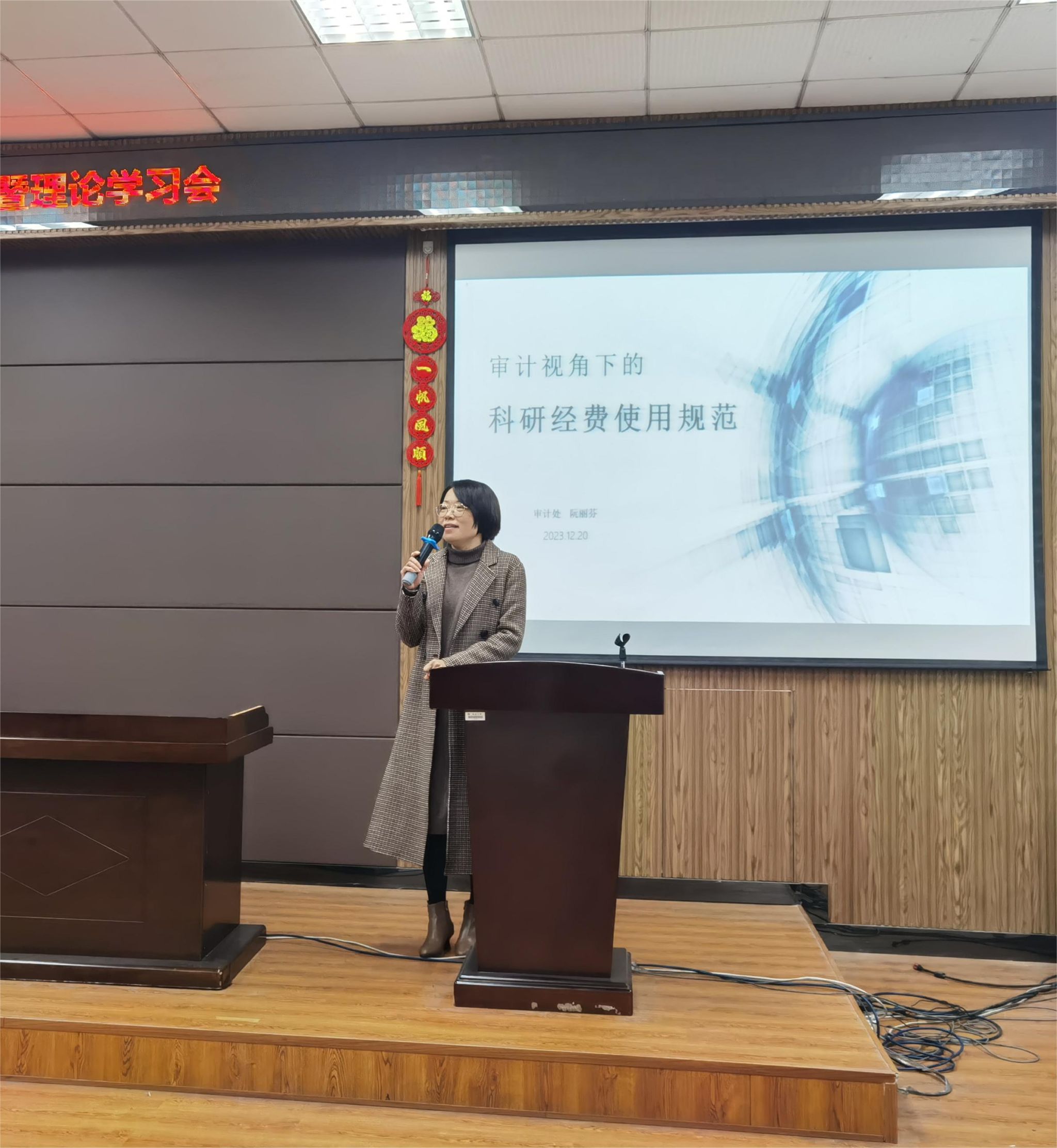 会议邀请审计处处长阮丽芬作《审计视角下的科研经费使用规范》专题讲座。阮老师从科研经费管理政策、科研经费使用的合规性、合理性、真实性和相关性等方面,结合真实案例进行了详细介绍和深入分析。