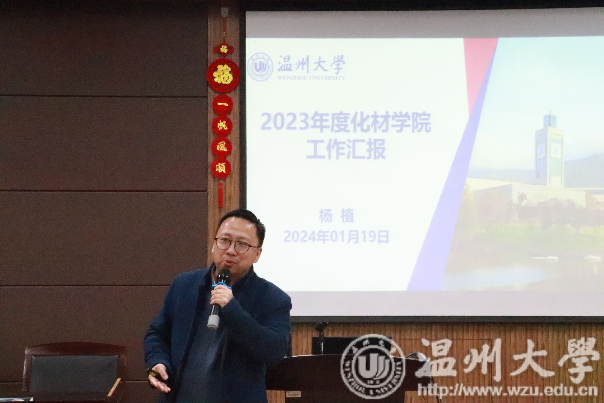 学院院长杨植作题为《感恩奋进勇争先 砥砺前行绘新卷 ——奋力书写新时代化材学院发展新篇章》的年度工作报告,全面回顾了我院在学科建设、专业建设、人才培养、科学研究、服务地方、队伍建设、党建工作等几个方面取得的成就,并对2024新的一年工作提出了要求。他指出,新的一年全院师生员工要以坚如磐石的信心、只争朝夕的劲头、坚韧不拔的毅力,推动学院各项工作取得新发展、开创新局面。