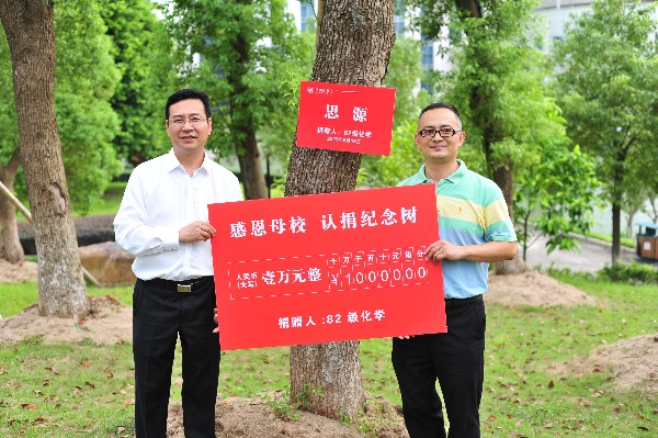 在8月15日下午的座谈会上,王舜院长对校友们的到来表示热烈欢迎,向校友介绍了化材学院的发展情况,感谢校友们对学院的持续关注和支持。在同学们简短的自我介绍后,陈迈、陈仁尔班长代表全体同学充分表达了对老师和学校的感恩之情,对同窗的深切友情。林娟娟副书记深情回顾了当年担任班主任的情景,真诚邀请校友常回母校看看,始终如一地关心母校和母院发展。为感恩母校,82化学校友向母校捐赠10000元,在校友林认捐“思源树”,寄托学子对母校的深情厚谊和感恩之情。为感恩化材学院培养,校友们向学院赠送一幅名为“桃李满园”的花卉国画,并向“化材之光”基金会捐款10000元,以表达对母校发展壮大、学子茁壮成长的殷切期望。