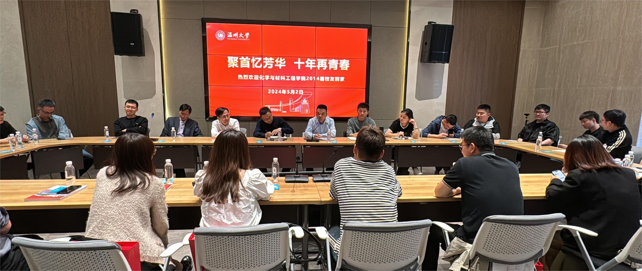 桃李归来日,校园满庭芳。52日,化学与材料工程学院2014应化、材料、化工班本科毕业校友一行30余人重返母校,举办毕业十周年座谈会,大家欢聚一堂,感恩母校情,再续同窗谊。学院副院长陈锡安老师原班主任陈久喜老师、晁国库老师、尹德武老师、陈连辉老师专业课邵黎雄老师,时任年级辅导员王壮老师、林萍老师等出席本次座谈会